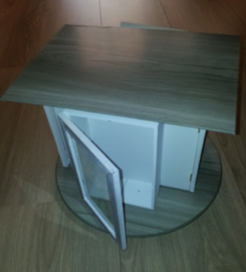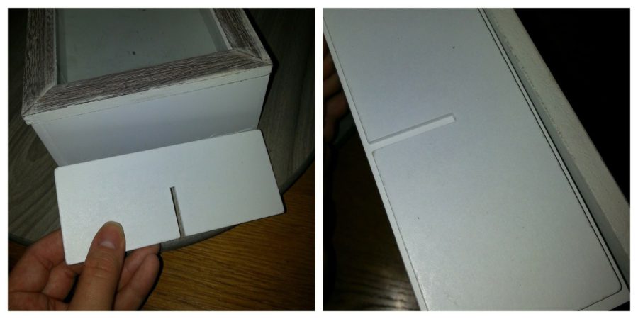 Als laatste heb ik ook deze aan de bovenzijde beplakt maar dit is ook optioneel. Lijm deze 2 boxen nu vast op de plank bovenop. Hij is nu bijna klaar!